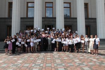 Голова Верховної Ради Володимир Литвин та посол Сполучених Штатів Америки Джон Теффт вручили сертифікати за участь у Програмі стажування 77 інтернам Верховної Ради України та 21 учаснику Програми стажування у центральних органах виконавчої влади України.