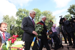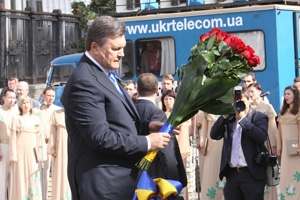О десятій годині Президент України Віктор Янукович, Голова Верховної Ради України Володимир Литвин і Прем'єр-міністр Микола Азаров поклали квіти до пам'ятників Тарасу Шевченку та Михайлу Грушевському, а потім біля пам'ятника Святому Володимиру взяли участь в урочистому зібранні «Благословенна і єдина Україна».