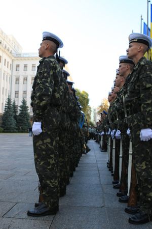 У Києві розпочалася підготовка до відзначення Дня Державного прапора України та 21-ї річниці незалежності. Сьогодні біля будинку адміністрації Президента України військовослужбовці почесної варти відпрацьовували злагодженість і стройову підготовку, яку вони продемонструють під час проведення свят на Майдані незалежності, що відбуватимуться 23–24 серпня у Києві.