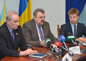 На знімку: прес-конференція голови Одеської обласної ради Миколи Пундика і його заступників – Миколи Тиндюка та Олексія Гончаренко, за підсумками роботи Одеської обласної ради 6-го скликання в 2011–2012-роках.