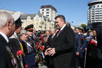 Президент України Віктор Янукович, Голова Верховної Ради України Володимир Рибак, народні депутати, урядовці взяли участь у церемонії вшанування пам’яті воїнів, полеглих у Великій Вітчизняній війні, що відбулася 9 травня в Києві, та поклали квіти до могили Невідомого солдата у парку Вічної слави, монументів тричі Героя Радянського Союзу Івана Кожедуба, двічі Героя Радянського Союзу Ахмет-Хана Султана і Героя Радянського Союзу Георгія Берегового на Алеї воїнської слави в парку Вічної слави. Учасники заходу вшанували пам’ять загиблих хвилиною мовчання, воїни роти почесної варти відсалютували залпами з особистої зброї на честь свята Перемоги.