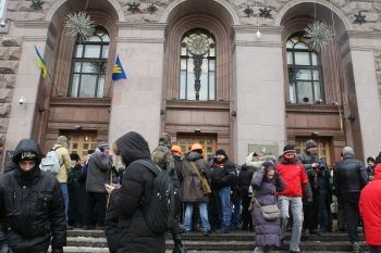 Зранку, близько 9.00, силовики спробували взяти штурмом Київську міську державну адміністрацію. Протестувальники, які забарикадувалися всередині, відбивали атаки водою з вікон другого поверху. Після чого правоохоронці сховались у автобуси й покинули площу перед будівлею.