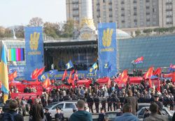 Уже традиційним для цього дня стало прибуття численних загонів міліції до майдану Незалежності. Вони мали завдання не допустити сутичок із прихильниками Української повстанської партії та учасниками контр-мітингу лівих сил. На щастя, цьогоріч обійшлося без масштабних сутичок, проте ближче до вечора кияни стали свідками жахливої какофонії, коли громадське об'єднання "Свобода" налаштовувало звук для проведення концерту на Майдані, а перед сценою фани Наталії Вітренко та представники "Київської Русі" намагалися всіляко заглушити репетицію звуком власних динаміків. За всім цим дійством незворушно споглядали міліціонери й бійці спецпідрозділів, розосереджені на підступах до центральної площі Києва.
