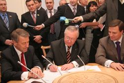 16 грудня у Верховній Раді України офіційно оголошено про підписання коаліційної угоди між фракціями БЮТ, «Наша Україна – Народна самооборона» та Блоком Литвина. Від імені фракції БЮТ її підписав Іван Кириленко, від «НУ – НС» – заступник голови фракції Борис Тарасюк, від фракції Блоку Литвина – її лідер Ігор Шаров.