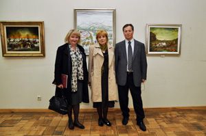 На знімку: аташе з культури Посольства Хорватії в Україні Вішня Стопар, консул Марія Скулібер, художник Анте Вукич на тлі його роботи “Зима біля дверей”.